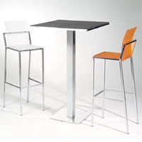Telaio in tubo di acciaio verniciato a polveri termoindurenti nei colori di serie. Piano diam 70/80 o 70x70/80x80 cm. di tipo: B1, C, E. |